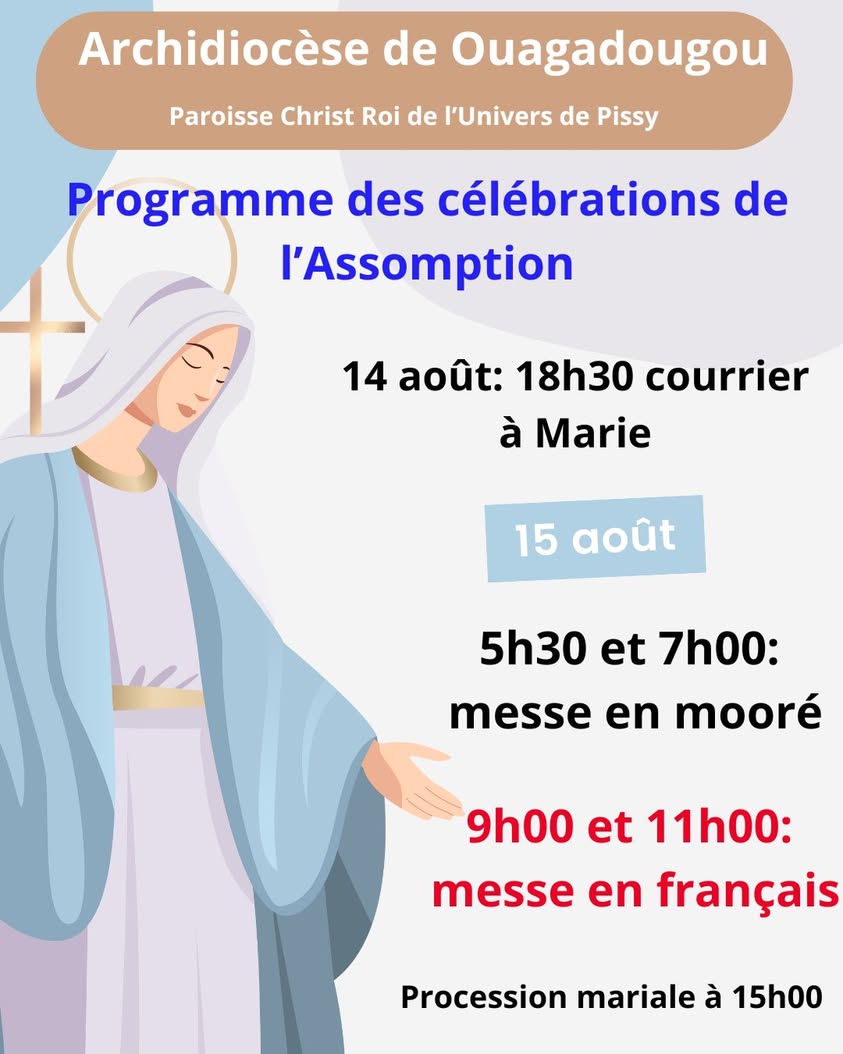 messe (anticipรฉe en moorรฉ) dรฉnommรฉe courrier ร Marie ร 18h30. Tous les fidรจles sont donc invitรฉs ร apporter leur courrier, pour que Marie les transmette ร son Fils.