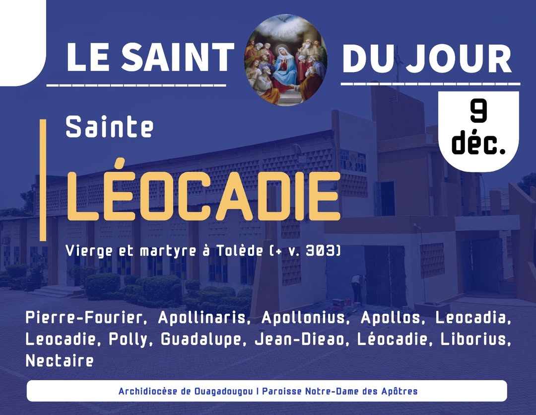 Aujourdโ€™hui, lโ€™ร‰glise fait mรฉmoire de ๐—ฆ๐—ฎ๐—ถ๐—ป๐˜๐—ฒ ๐—Ÿ๐—ฒฬ๐—ผ๐—ฐ๐—ฎ๐—ฑ๐—ถ๐—ฒ, vierge et martyre, patronne immรฉmoriale de la ville de Tolรจde, tรฉmoin lumineux de la fidรฉlitรฉ au Christ au cล“ur de la persรฉcution.