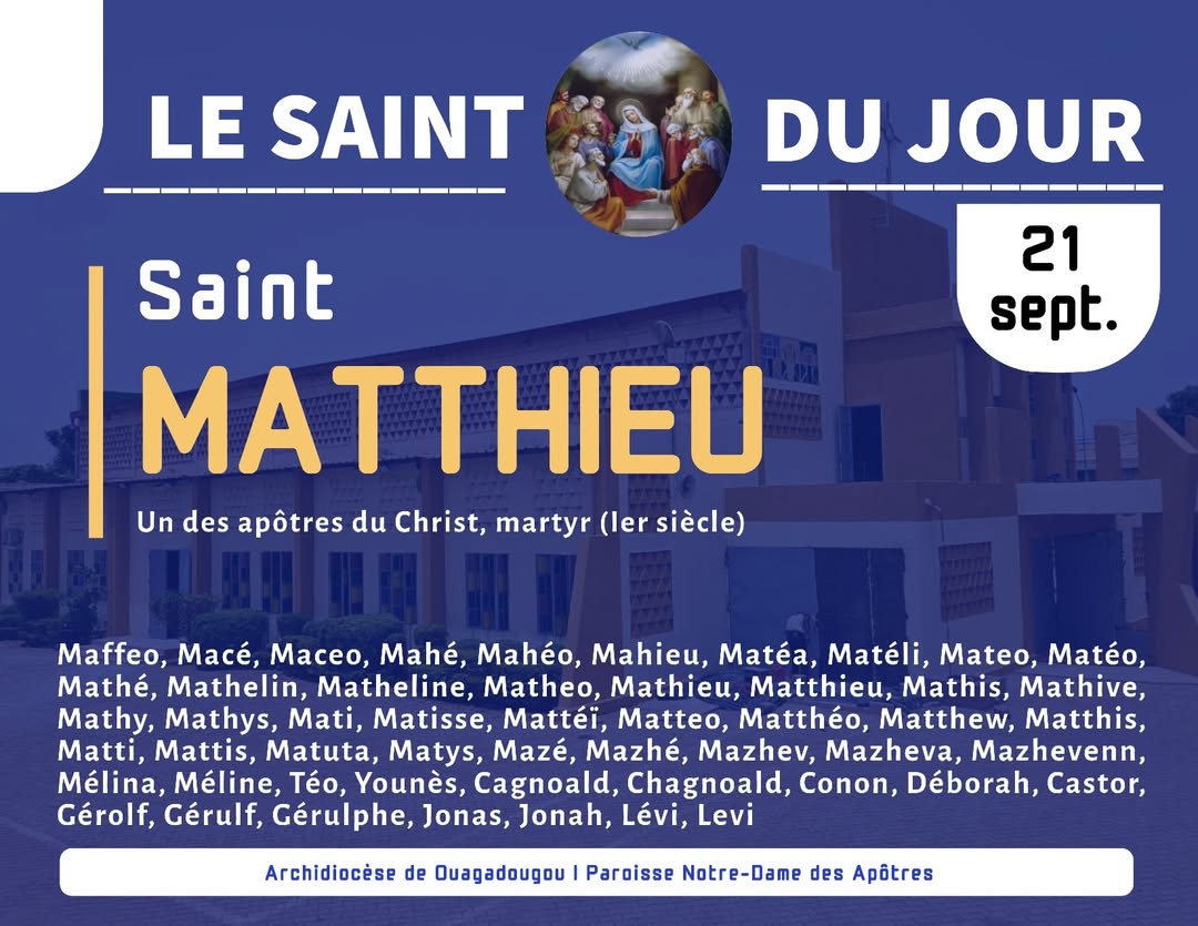 ๐ Que Saint Matthieu nous inspire la disponibilitรฉ ร rรฉpondre ร lโappel de Jรฉsus et la joie de Le suivre, en laissant derriรจre nous ce qui nous รฉloigne de Lui.