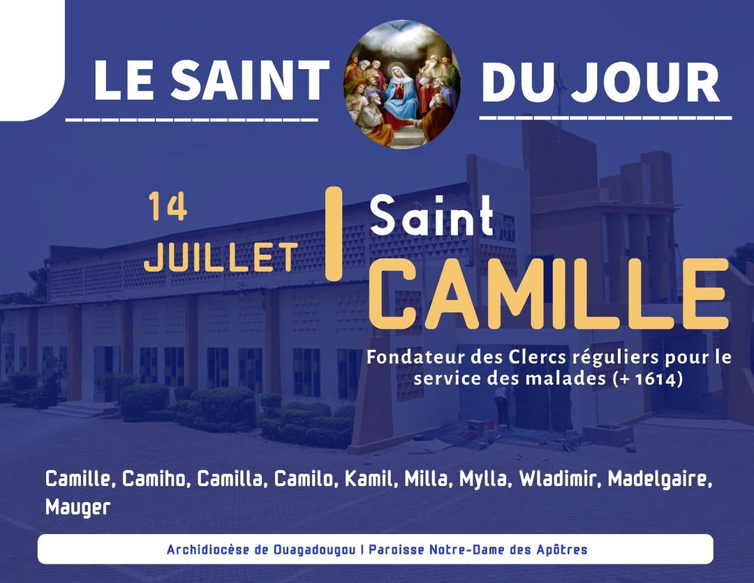 Aujourdโhui, lโรglise fรชte ๐ฆ๐ฎ๐ถ๐ป๐ ๐๐ฎ๐บ๐ถ๐น๐น๐ฒ ๐ฑ๐ฒ ๐๐ฒ๐น๐น๐ถ๐ (1550โ1614), ancien soldat converti, devenu prรชtre et fondateur des ๐๐น๐ฒ๐ฟ๐ฐ๐ ๐ฟ๐ฒฬ๐ด๐๐น๐ถ๐ฒ๐ฟ๐ ๐ฝ๐ผ๐๐ฟ ๐น๐ฒ ๐๐ฒ๐ฟ๐๐ถ๐ฐ๐ฒ ๐ฑ๐ฒ๐ ๐บ๐ฎ๐น๐ฎ๐ฑ๐ฒ๐.