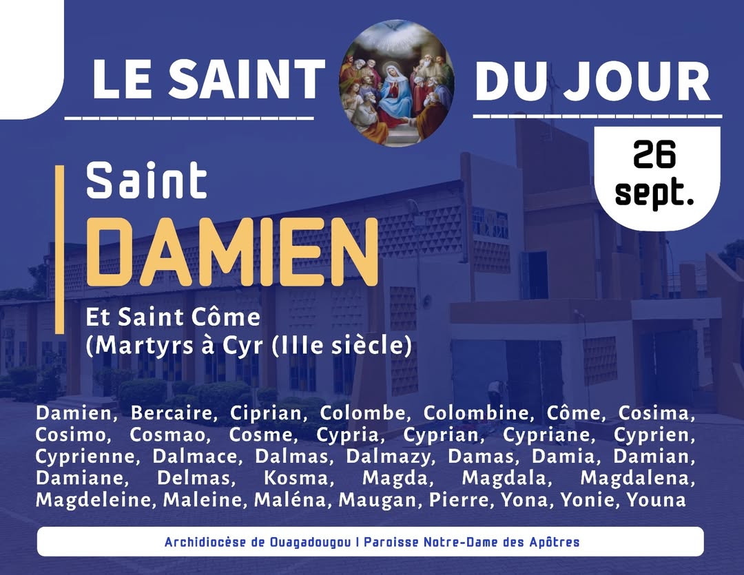 ๐ Que Saints Cรดme et Damien nous apprennent ร mettre nos talents au service des autres, dans un esprit de gratuitรฉ et dโamour fraternel.