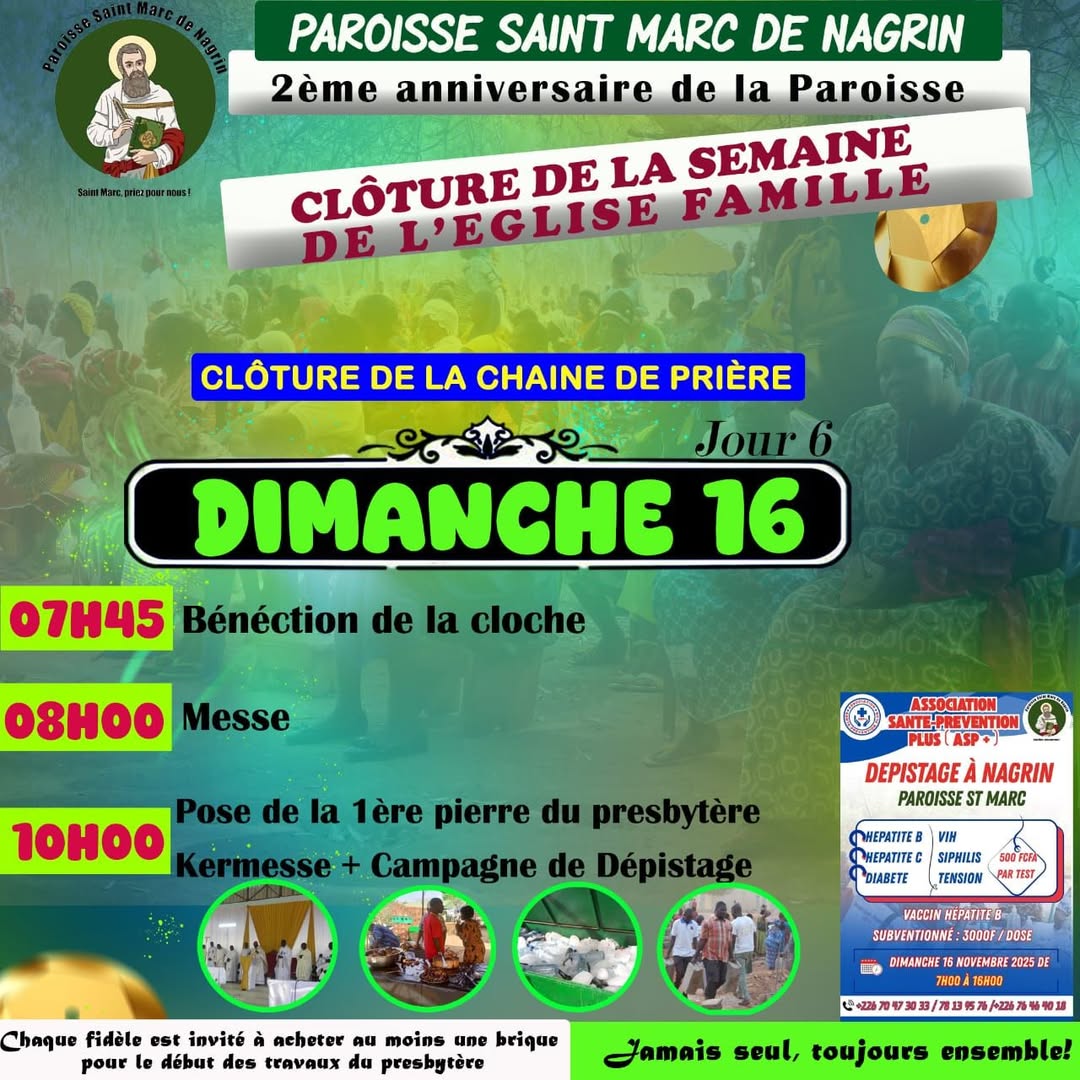 16 Novembre : 2eme anniversaire de la création de la Paroisse Saint Marc de Nagrin Ouagadougou