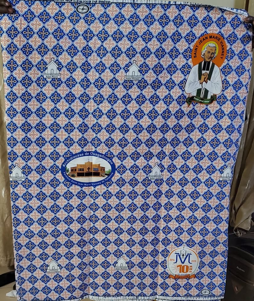 A l’occasion du 10e anniversaire de la paroisse, un pagne est mis en vente au prix de 2000f le pagne.