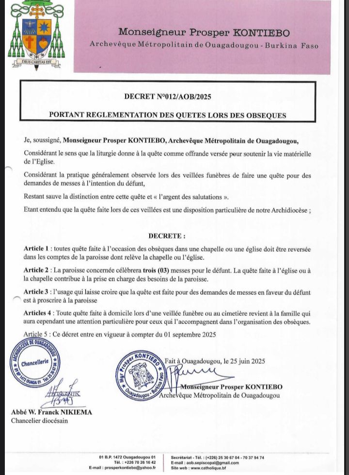 Archidiocèse de Ouagadougou De la paroisse Sainte Joséphine Bakhita de Rayongo 15-12-25 Messe d’érection de …