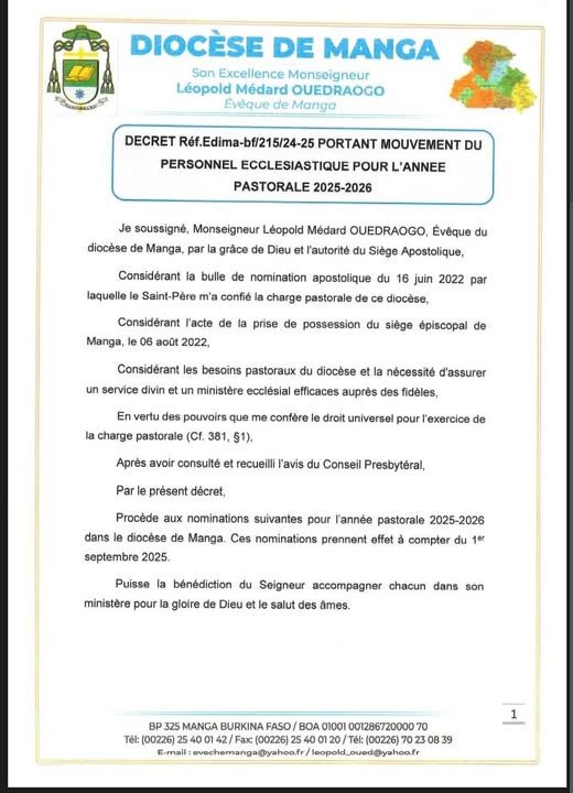 Mouvement des prêtres du diocèse de Manga.