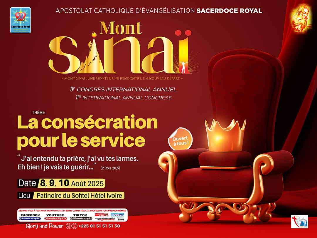 📅 Les 8, 9 et 10 août 2025, le Sacerdoce Royal t’invite à monter à la rencontre de DIEU, à l’occasion de son 11ᵉ congrès annuel international.