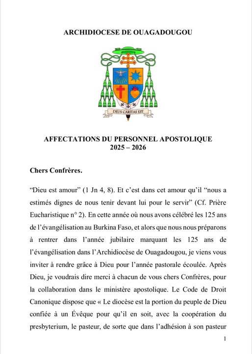 AFFECTATIONS DU PERSONNEL APOSTOLIQUE 2025-2026