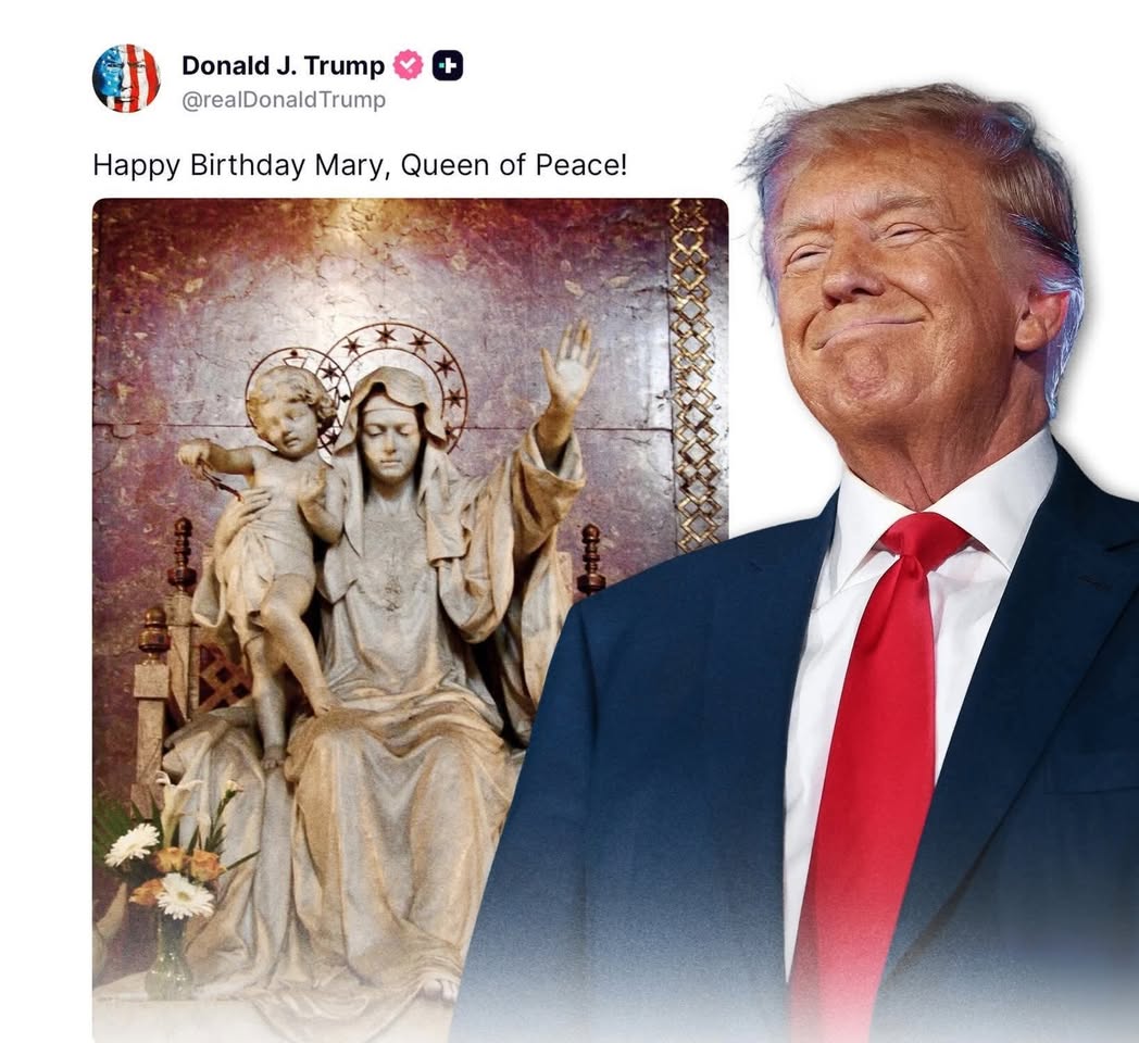 Pendant ce temps, le President Donald #Trump a souhaité un joyeux anniversaire à la Vierge Marie…. 😊