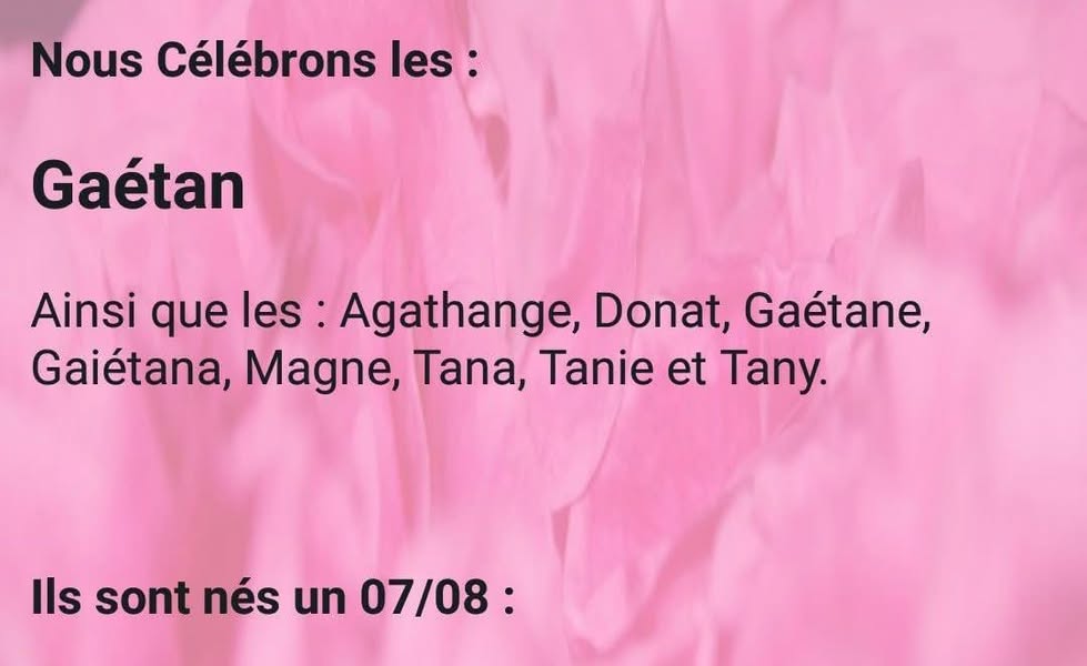BONJOUR A TOUTES ET A TOUS. BONNE FÊTE A TOUS CEUX QUI CÉLÈBRENT AUJOURD’HUI LEUR FÊTE PATRONALE.