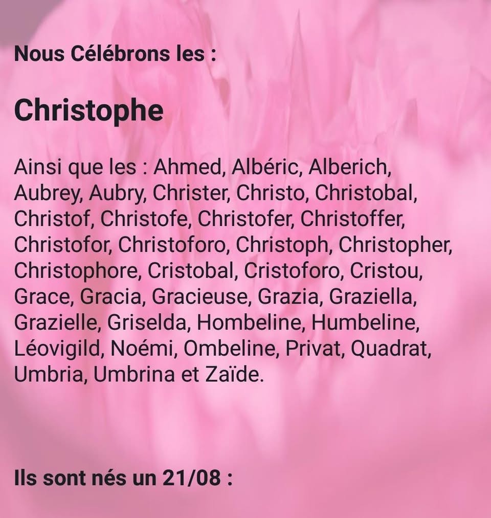BONJOUR A TOUTES ET A TOUS. BONNE FÊTE A TOUS CEUX QUI CÉLÈBRENT AUJOURD’HUI LEUR FÊTE PATRONALE.
