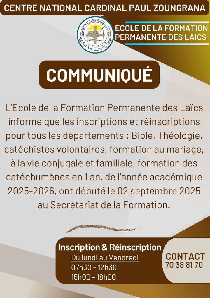 Reprise des inscriptions à l’Ecole de formations permanentes des Laics.