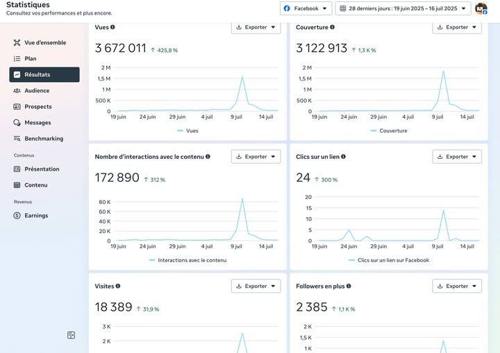 • 𝟑,𝟔 𝐦𝐢𝐥𝐥𝐢𝐨𝐧𝐬 𝐝𝐞 𝐯𝐮𝐞𝐬 (+𝟒𝟐𝟓,𝟖 % !)