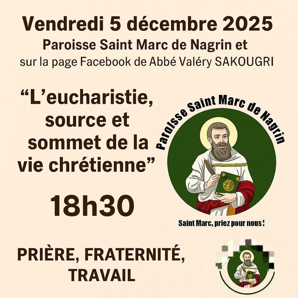 📍 À l’église Saint Marc de Nagrin et en direct sur la page Facebook de l’Abbé Valéry Sakougri.