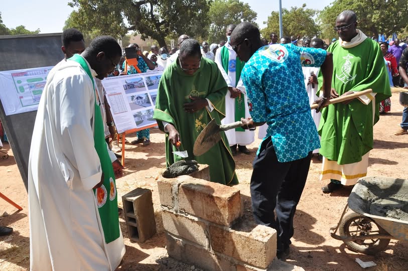 À la fin de la messe, la communauté a assisté avec joie à un moment historique : la pose de la première pierre du futur presbytère. Ce geste symbolique marque le début d’un projet majeur pour la vie et la structuration de la Paroisse. Dans la même dynamique, il a été procédé au lancement de la vente des briques, étape essentielle pour le démarrage des travaux de construction.
