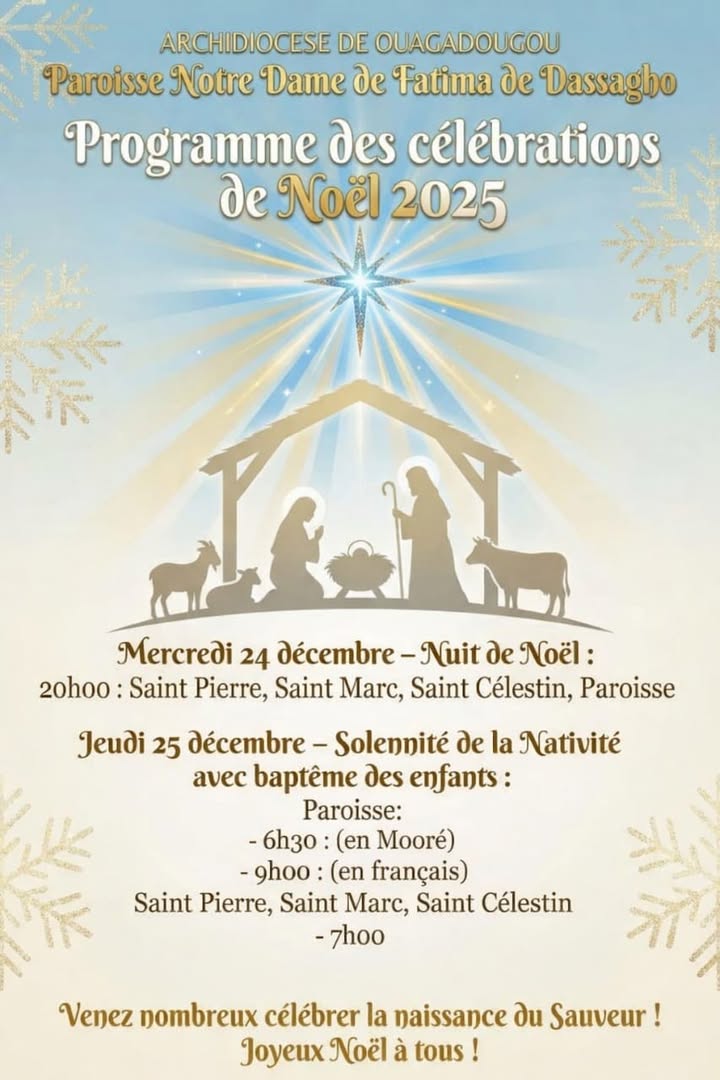 Dans l’attente du Sauveur, voici le programme des célébrations de Noël à la Paroisse Notre Dame de Fatima de Dassasgho