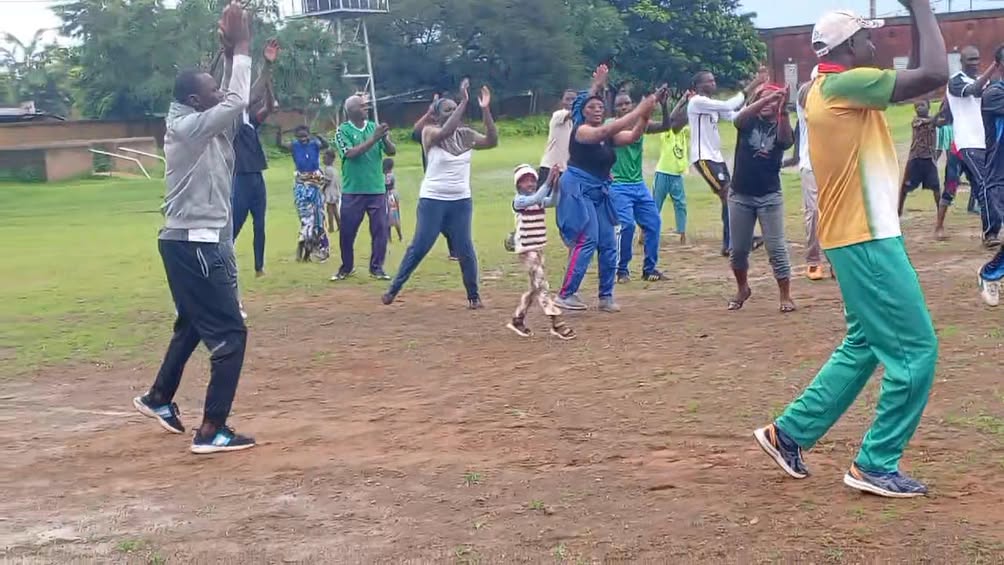 La séance aérobic suivie du match de football opposant les agents pastoraux aux ressortissants et fidèles laïcs
