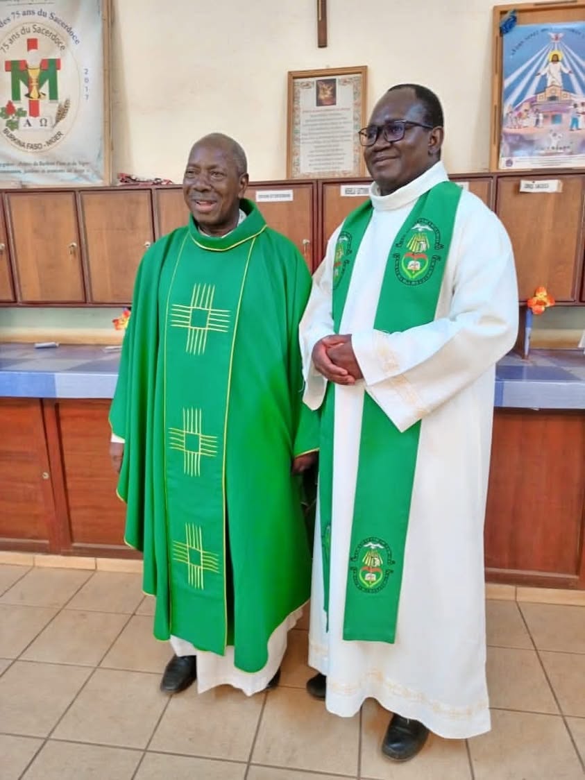 Aux l’abbés Thomas Ky , curé de la paroisse sacre coeur de TOMA et Dieudonné Domba (14 juillet 2012 – 14 juillet 2025) soit 13 ans de vie sacerdotale.