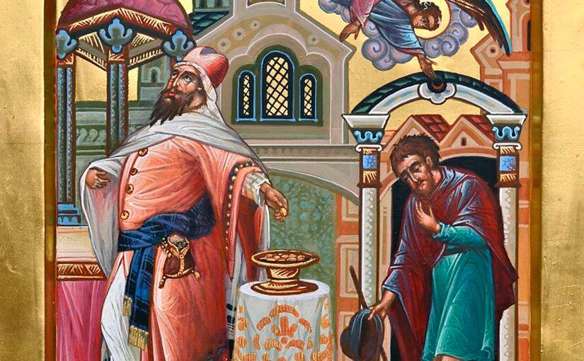 L’Évangile est précisément là aujourd’hui pour mettre en valeur la prière du pauvre. Jésus nous raconte une parabole pour faire passer un message de la plus haute importance. Il nous présente un pharisien et un publicain. Tous deux montent au temple pour prier. Ils pratiquent la même religion mais ils ne sont pas ensemble. Le pharisien présente à Dieu un bilan impressionnant : il n’a commis aucune faute, il jeûne, il fait l’aumône. Tout ce dont il est fier est sans doute vrai. D’ailleurs, ce n’est pas cela que Jésus lui reproche.