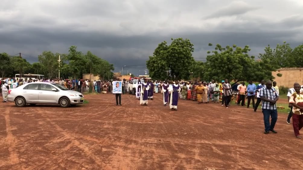 Accueil du corps de l’Abbé André Zèwaguin KI au portail de la Cathédrale de Dédougou.