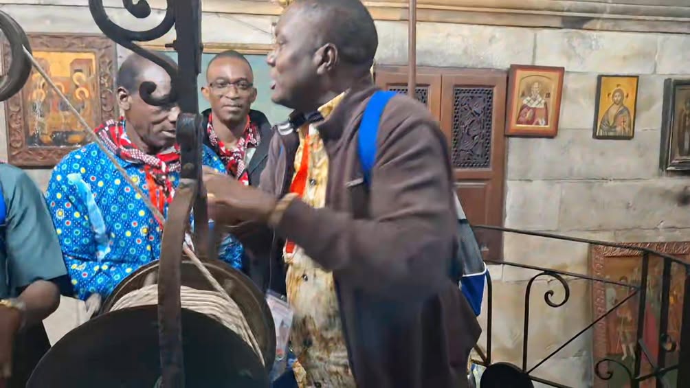 Les pèlerins puisent et boivent l’eau du puits de Jacob