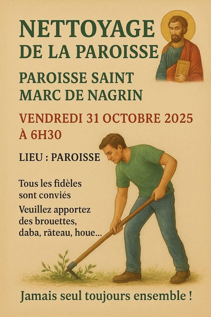 Elle nous invite demain matin après la messe de 05h45 pour le nettoyage de la Paroisse.