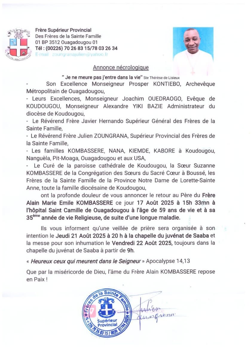 Samedi 23/08/25: Messe d’inhumation