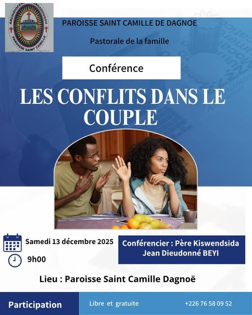 Samedi 13 décembre: conférence sur le thème *les conflits dans les couples* à partir de 9h dans la grande salle du CPL.