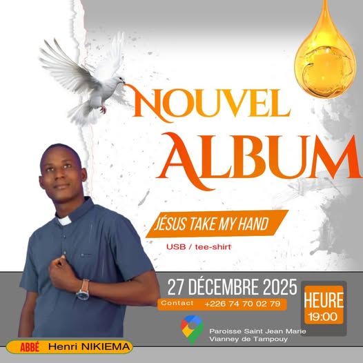 Rendez-vous ce samedi #27_décembre_2025 à la paroisse Saint Jean Marie Vianney de Tampouy pour le #la_sortie_officielle de l’album de l’abbé #Henri_NIKIEMA suivie d’un #concert à partir de #19_heures.