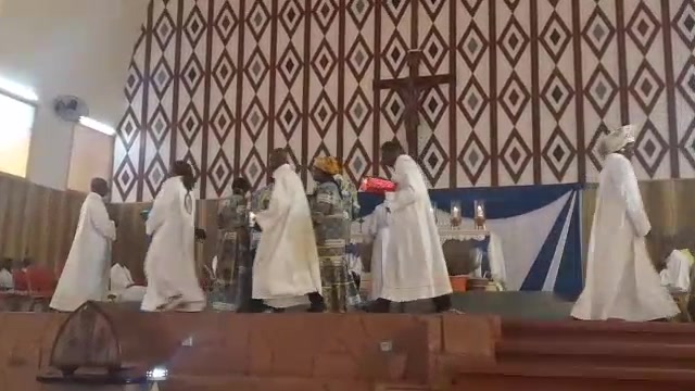 Remise des cadeaux aux *parrains* et *marraines* , les deux *Archevêque* *Émérite* et *l’archevêque* de bobo…