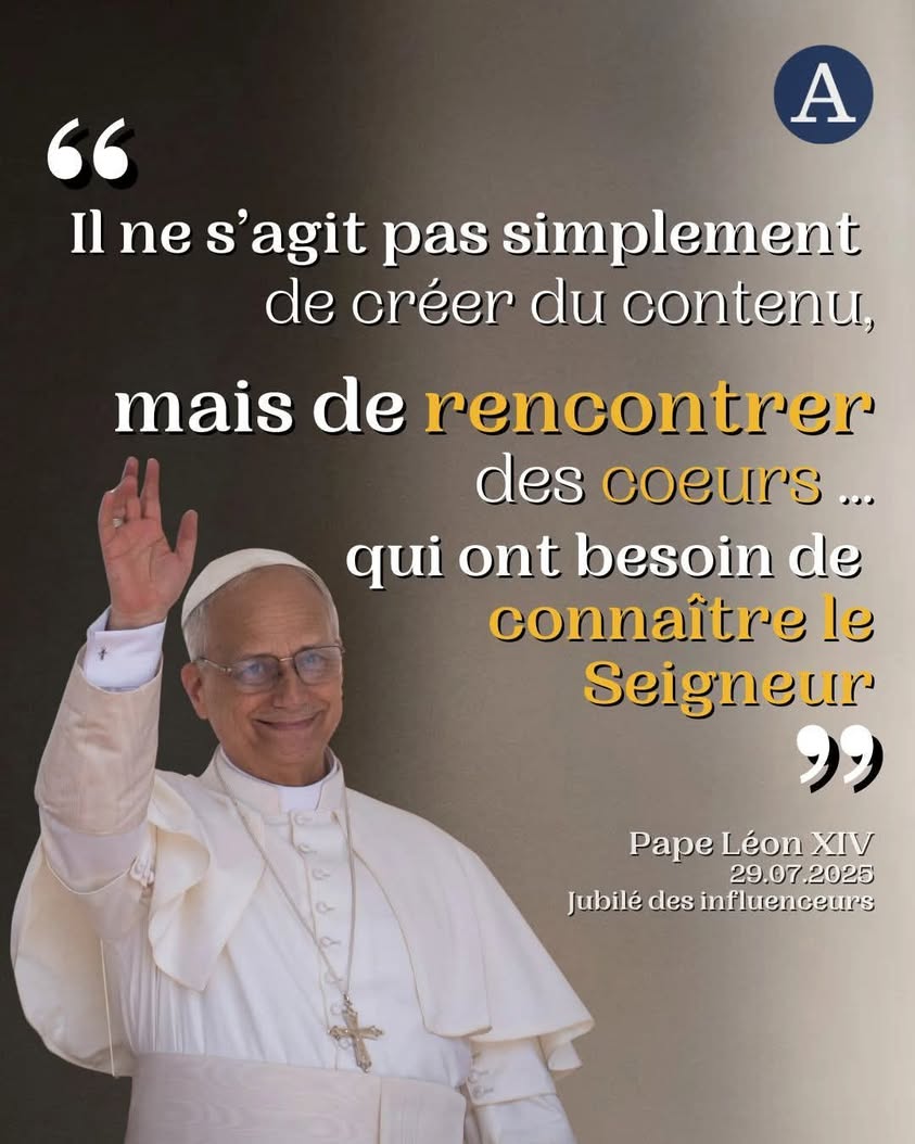 1. C’est la mission que l’Église vous confie également aujourd’hui, à vous qui êtes ici à Rome pour votre Jubilé, venus renouveler votre engagement à nourrir d’espérance chrétienne les réseaux sociaux et les milieux numériques. La paix doit être recherchée, annoncée, partagée partout, tant dans les lieux dramatiques de la guerre que dans le cœur vide de ceux qui ont perdu le sens de l’existence et le goût de l’intériorité, le goût de la vie spirituelle. Et aujourd’hui, peut-être plus que jamais, nous avons besoin de disciples missionnaires qui portent dans le monde le don du Ressuscité ; qui donnent voix à l’espérance que nous donne Jésus vivant, jusqu’aux extrémités de la terre (cf. Ac 1, 3-8) ; qui arrivent partout où il y a un cœur qui attend, un cœur qui cherche, un cœur qui a besoin. Oui, jusqu’aux confins de la terre, aux confins existentiels où il n’y a pas d’espoir.