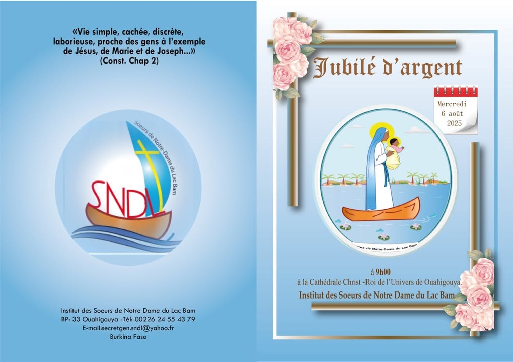 Ont la joie de vous faire part de la célébration d’action de grâce du jubilé d’argent de vie religieuse de leurs sœurs et filles le mercredi 6 août 2025 à 9 heures à la Cathédrale Christ-Roi de l’Univers de Ouahigouya.