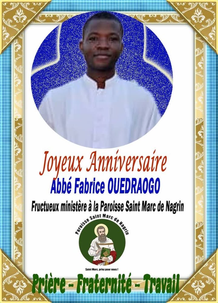 Souhaitons un Joyeux anniversaire à M. l’abbé Fabrice OUEDRAOGO qui souffle une bougie de plus en jour 1er Octobre.