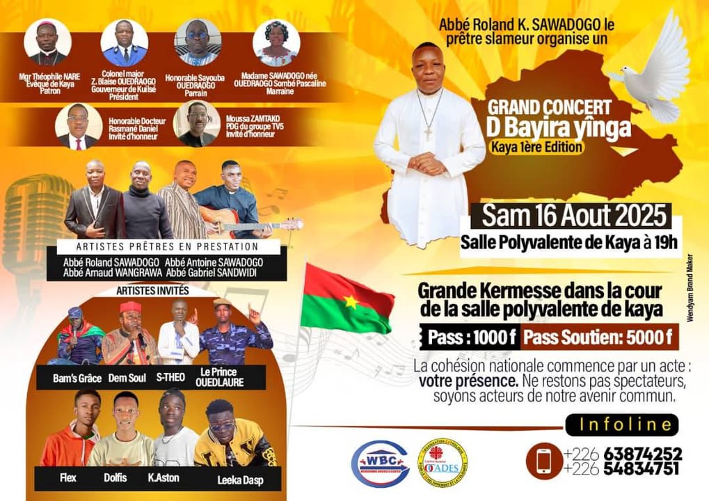 Toutes et tous à Kaya pour soutenir monsieur l’abbé Kiswensida Roland SAWADOGO au grand concert dénommé << D Bayira yĩnga>>