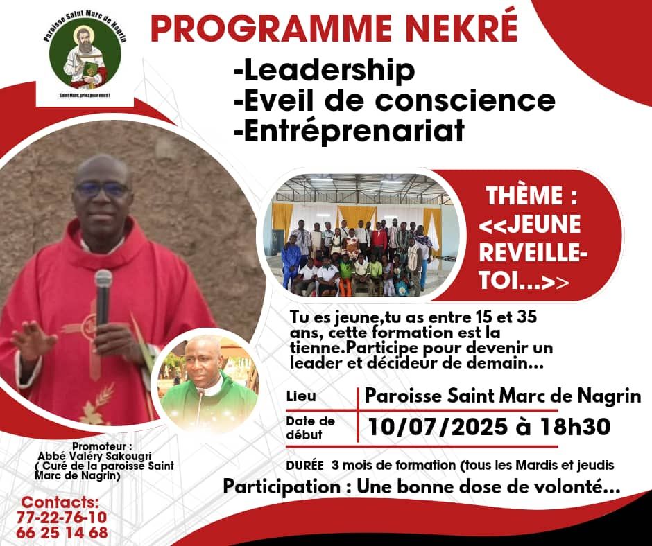Tu es jeune, tu souhaites être un vrai #leader prospère et engagé, participe à ce programme spécial jeune qui débute ce Jeudi 10 Juillet 2025 à la #Paroisse Saint Marc de Nagrin.